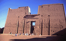 erbaute Tempel ist dem falkengestaltigen Sonnengott Horus, der Hathor von